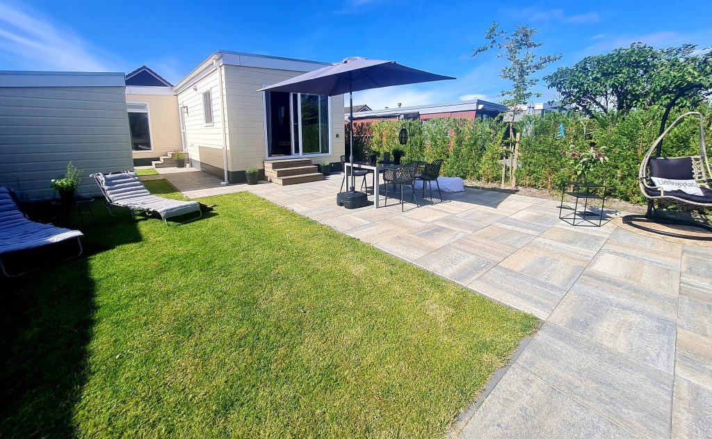 Der Garten ist modern angelegt und bietet Platz für Liegeflächen, einen Grill-Abend und gemeinsame Stunden mit Freunden und Familie.